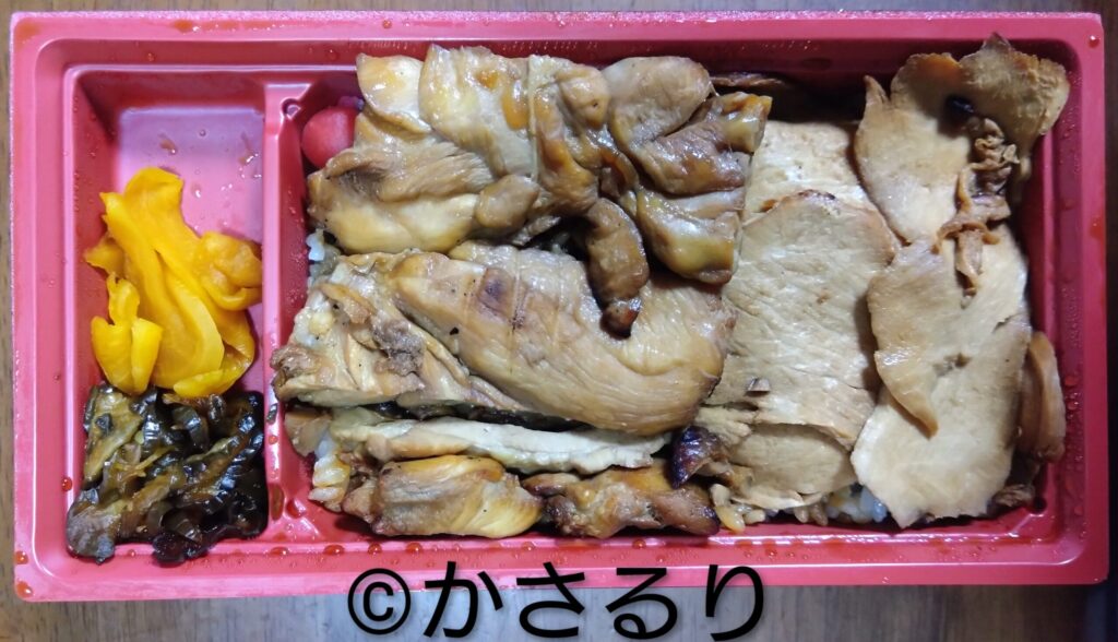 ・竹弁当はムネ肉のみ。松弁当はムネ肉とモモ肉の2種類が入っている。